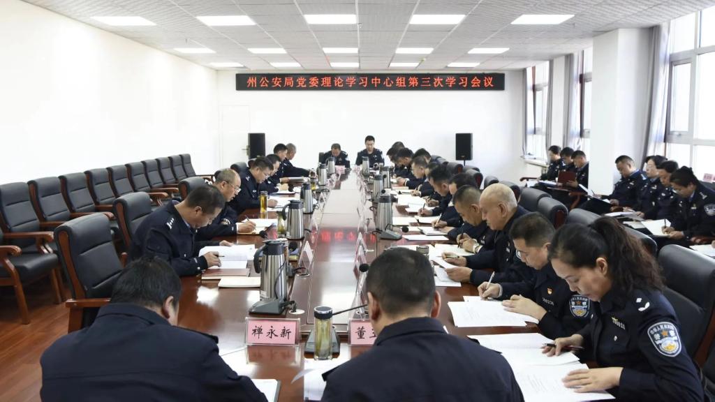 3月6日,州公安局召开党委理论学习中心组第三次学习会议,专题学习习近平总书记关于党的建设和党的自我革命重要思想。副州长、州公安局党委书记、局长陈吉勇主持会议并讲话。
