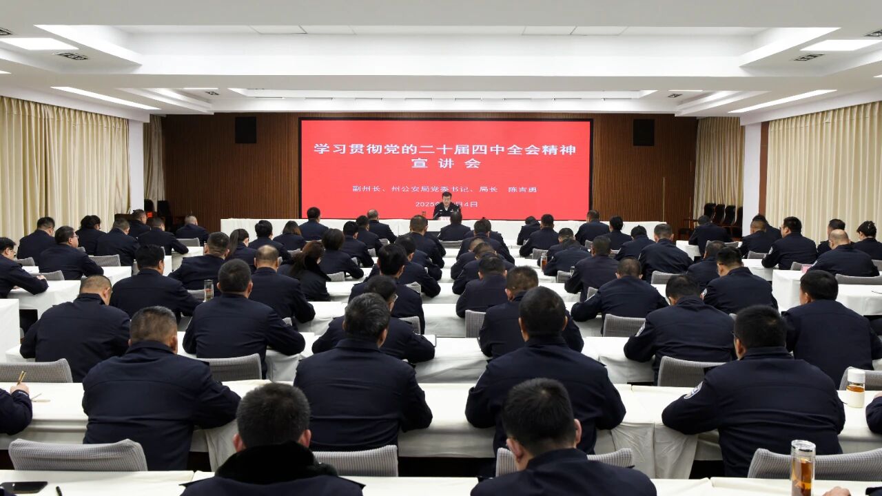 12月4日,州公安局召开学习贯彻党的二十届四中全会精神宣讲会,副州长、州公安局党委书记、局长陈吉勇作专题宣讲。