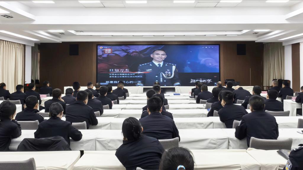 当发布仪式播放我州卓尼县公安局尼巴派出所所长旦知刀杰的先进事迹时,收看现场多次响起热烈掌声。屏幕中,这位被牧民称为“车巴沟活地图” 的藏族民警,背着设备翻山越岭为千余名行动不便群众办证、暴雪天徒步救援被困游客、用心用情化解矛盾纠纷的画面,让在场的甘南公安民警倍感亲切与自豪。