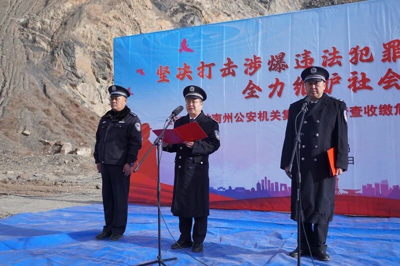 为深入推进打击整治枪爆违法犯罪专项行动,坚决消除非法危爆物品安全隐患,切实维护社会公共安全和人民生命财产安全。1月21日至23日,甘南州公安局组织开展了以“坚决打击涉爆违法犯罪、全力维护社会安全稳定”为主题的集中销毁非法危爆物品活动。副州长、州公安局党委书记、局长陈吉勇出席活动并现场督导销毁工作。