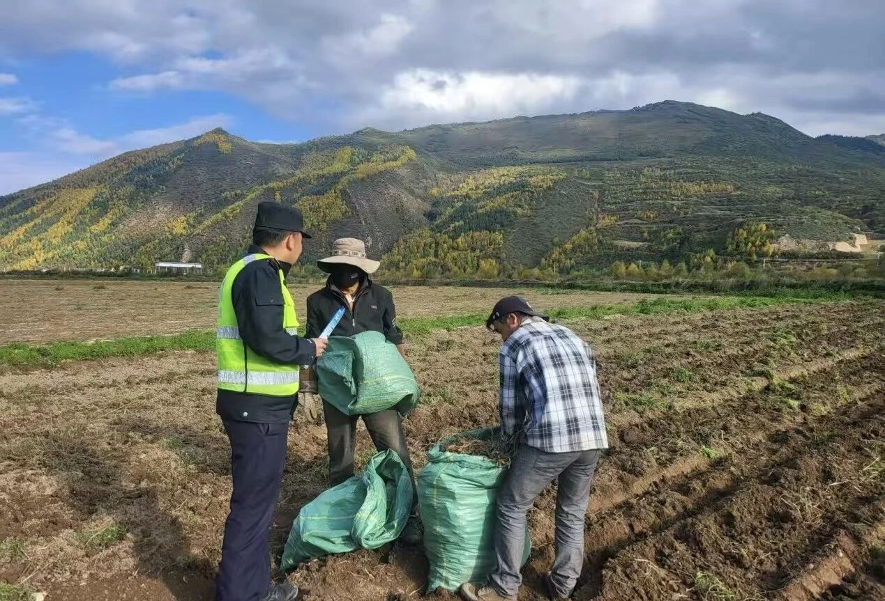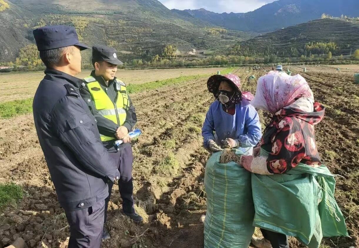 近期迎来中药材采挖季,为确保药材收割期间辖区道路交通安全,预防和减少道路交通事故的发生,近日,临潭县公安局术布交警中队民辅警走进辖区田间地头、村社街道开展“护航丰收平安行”宣传活动,通过“面对面”精准宣传,切实将交通安全知识送到农民群众心中。
