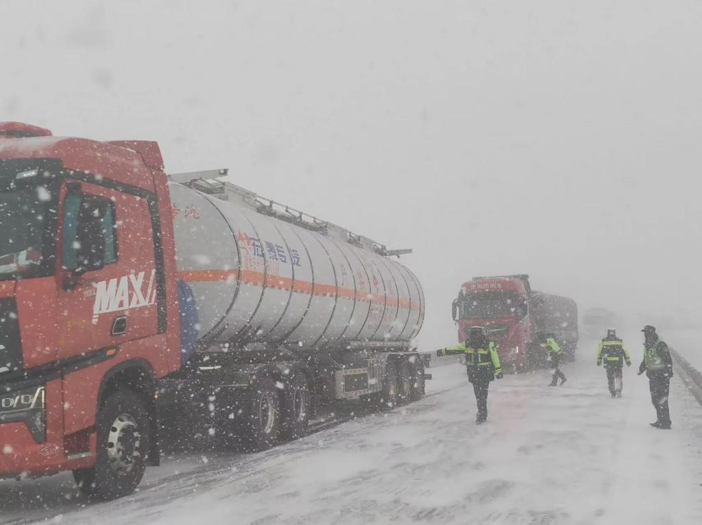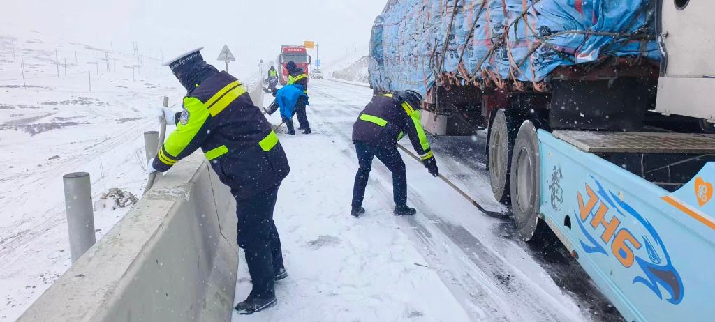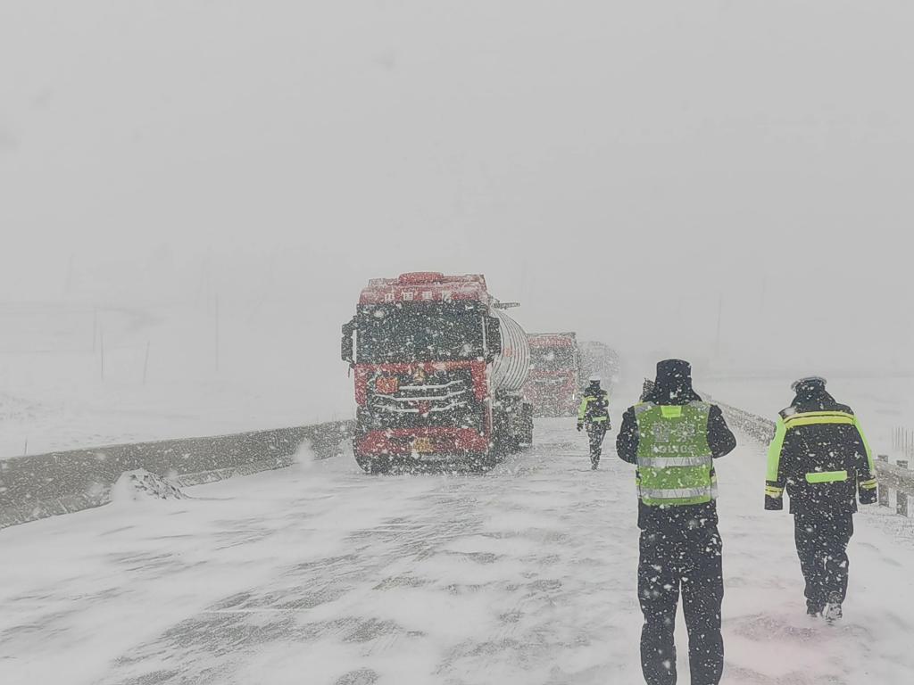 11月22日,碌曲辖区遭遇强降雪天气,寒风裹挟大雪快速覆盖路面,国道213线、568线部分路段出现积雪结冰、能见度骤降等情况,给过往车辆通行带来极大安全隐患。