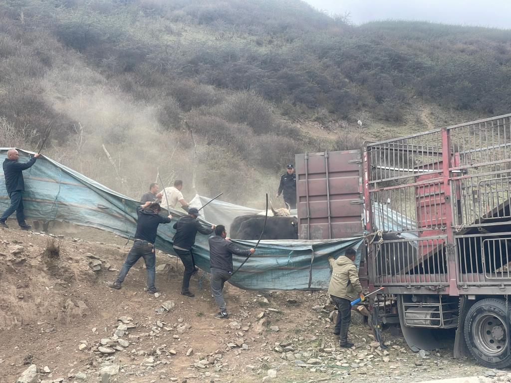 近日,夏河县公安局桑科派出所接到货车司机报警称:其驾驶的货车在甘青交界处发生侧翻事故,导致货车上的部分牛因为受惊跑进了桑科的一侧密林里。
