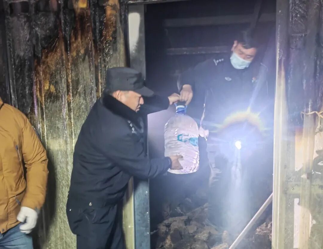 抵达现场后,民辅警第一时间开展现场勘查,确认房屋内无人被困,随即划定安全警戒区域,有序组织群众用铁锹清理未燃烧的牛粪及周边易燃杂物,阻断火势蔓延通道,形成“灭火+控险”双重处置格局。经过3小时协同奋战,现场大火被成功扑灭,无人员伤亡,最大限度降低了牧民财产损失。灭火后,民辅警组织对火灾现场进行全面排查,逐一清除残留火点、高温隐患,反复确认无复燃风险后,解除现场警戒。经初步调查,此次火灾疑似牧民日常用火后未彻底熄灭明火,火星引燃周边牛粪所致,具体起火原因正在进一步核实中。